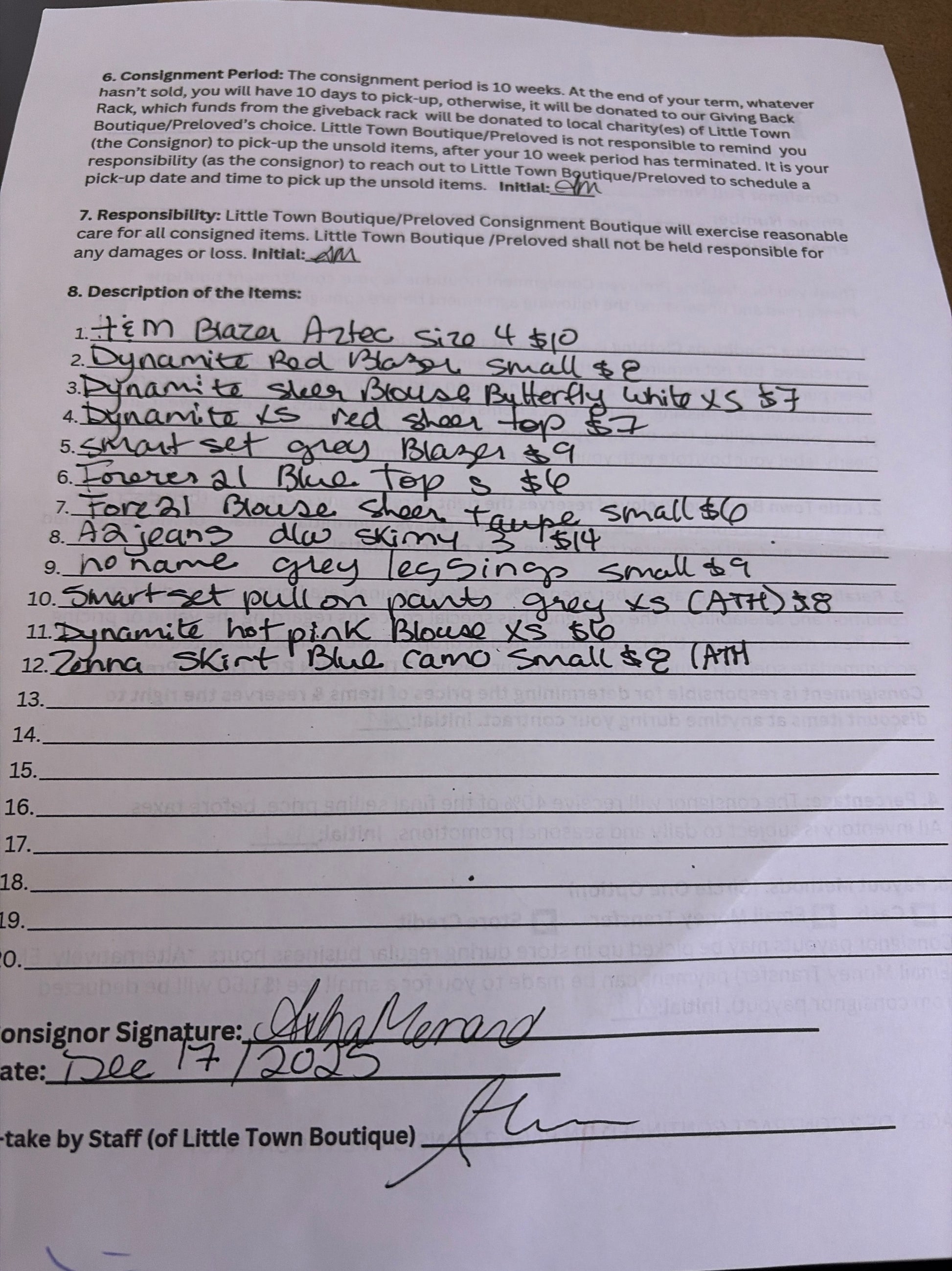 Preloved Consignment Boutique Purchases: All Items are FINAL SALE. No exchange or returns.