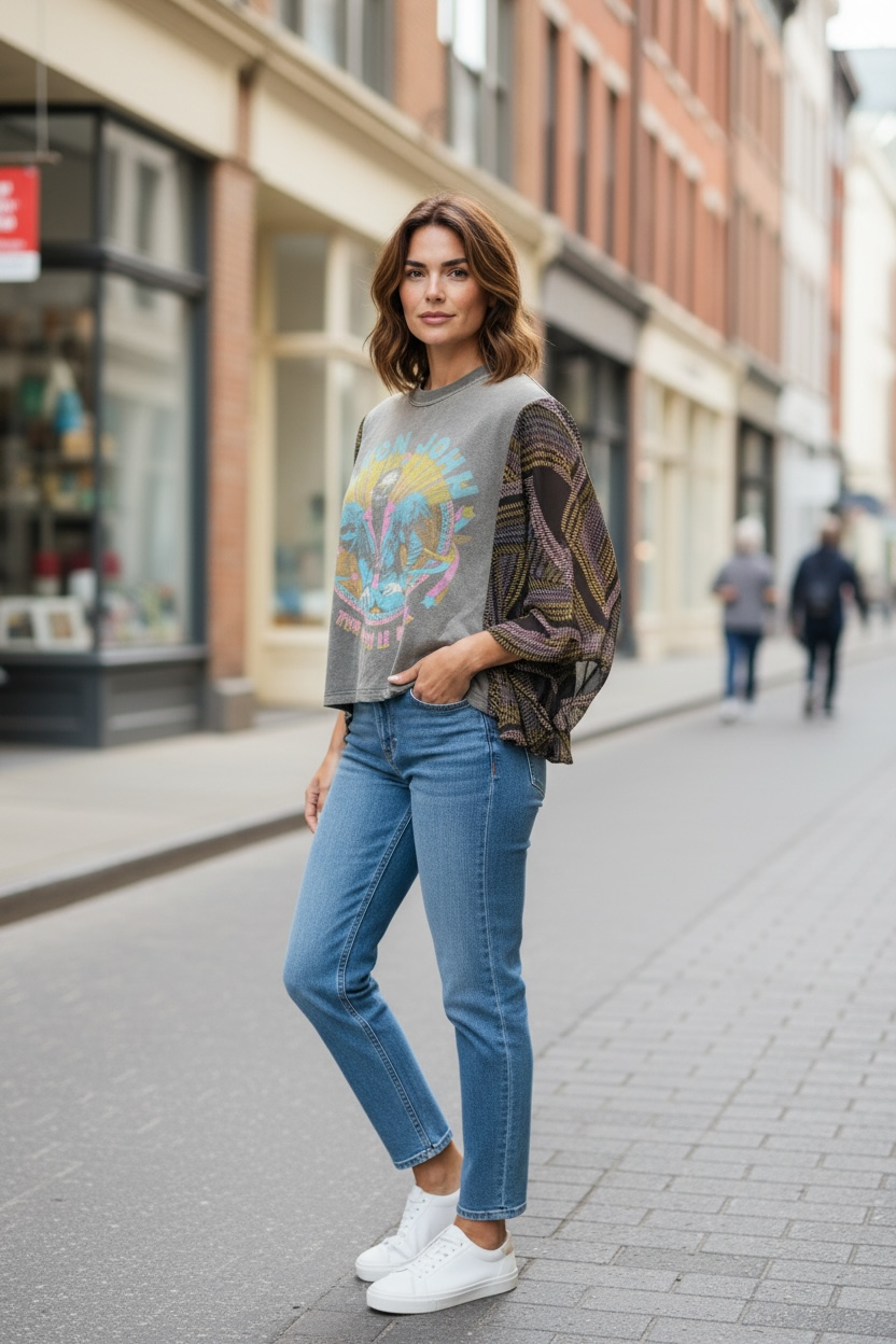 These pieces have been made using upcycled Rock band tees, each piece is one-of-a-kind and designed combining deconstructed vintage denim and upcycled band tees. This diverts it from the landfills and gives it new life.