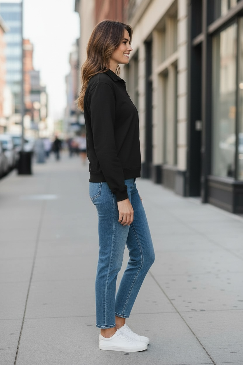 The French Terry 1/4 Zip Pullover Sweater - Black