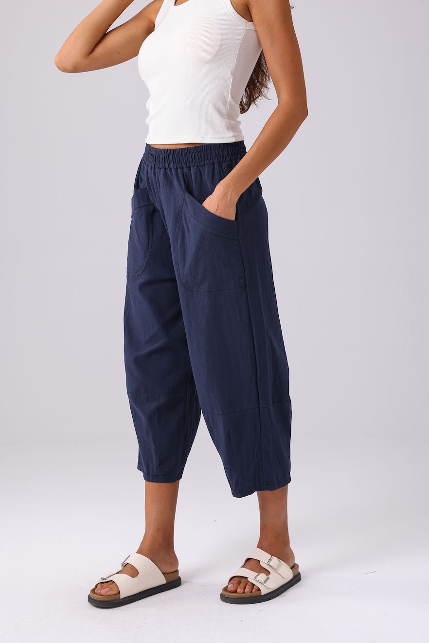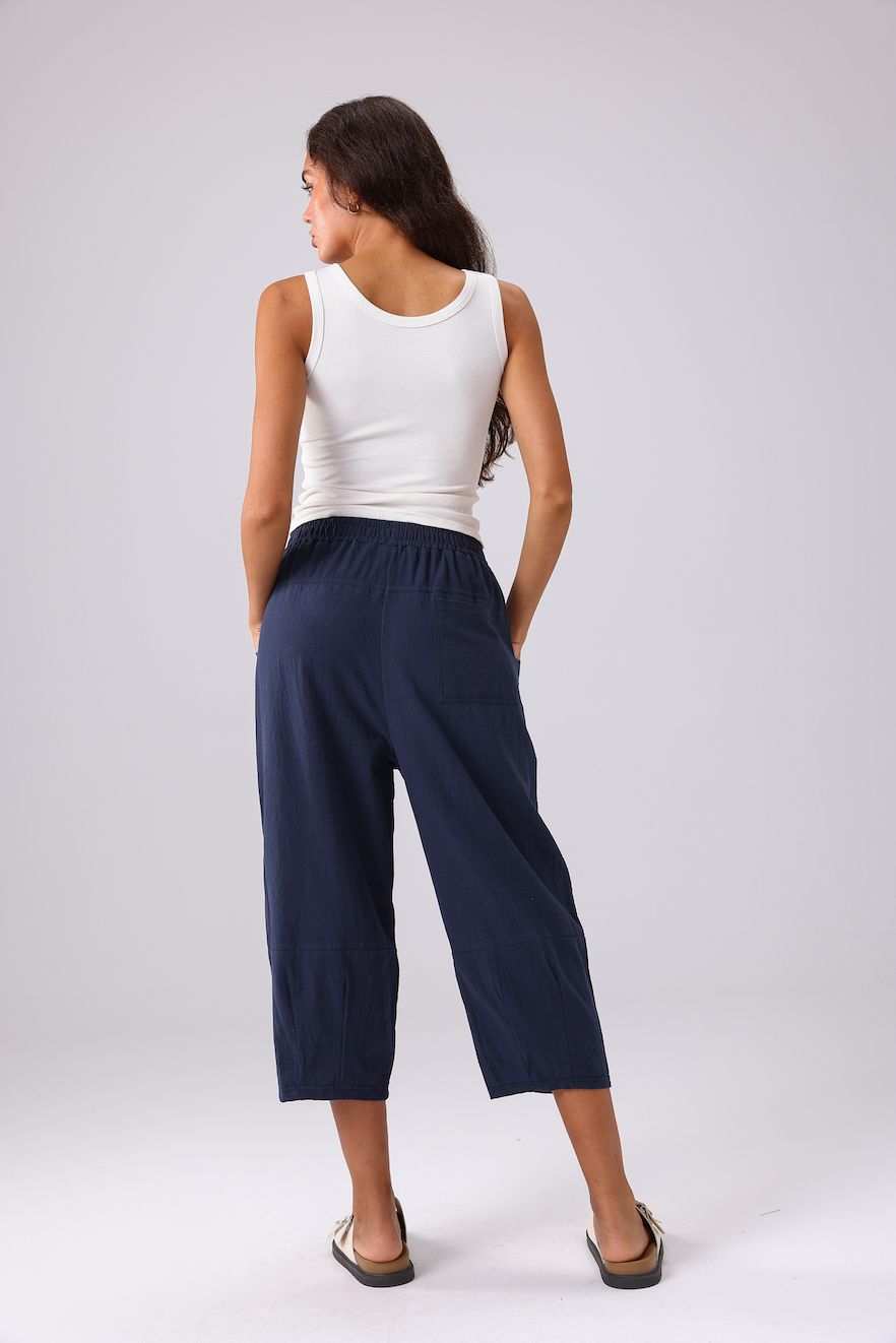 The Linen Cropped Pant - Navy